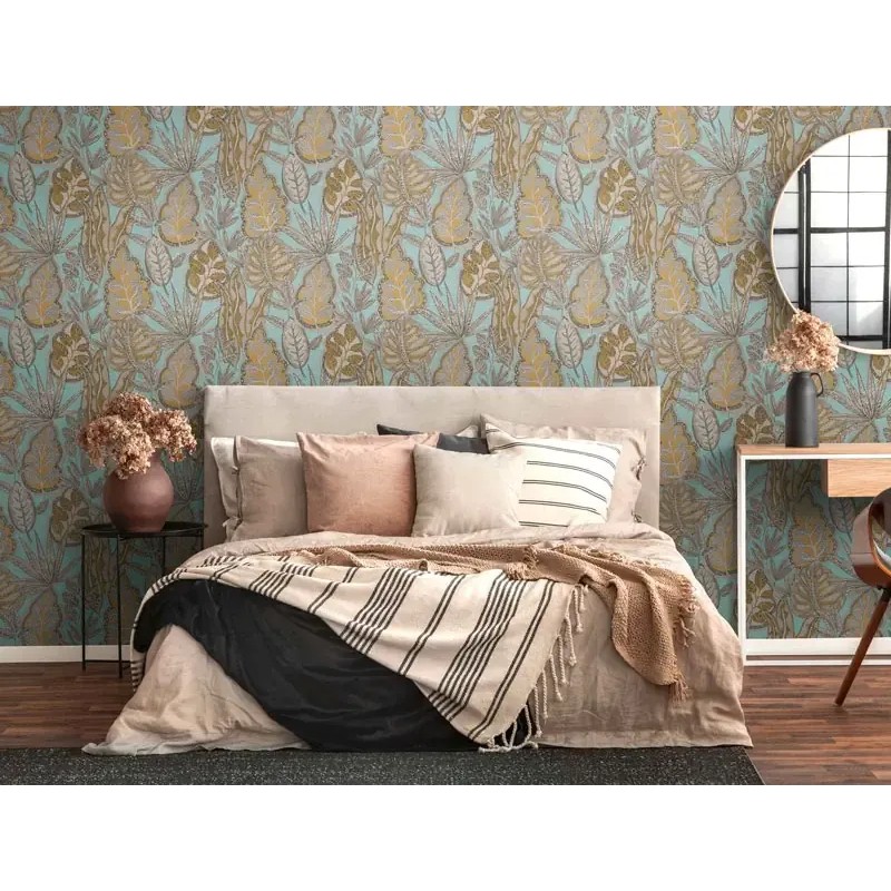 Papel pintado estilo floral boho marrón y amarillo, Una solución elegante para renovar tus paredes con estilo. As Creation Famous Garden 393463.
