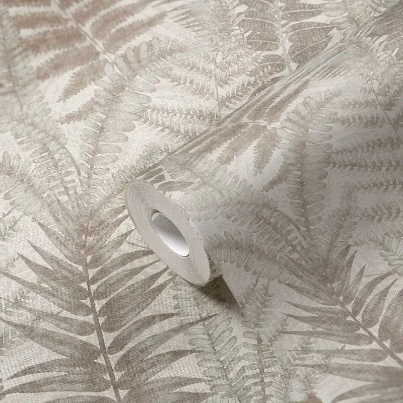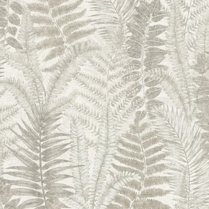 Papel pintado helechos arbóreos gris topo y beige