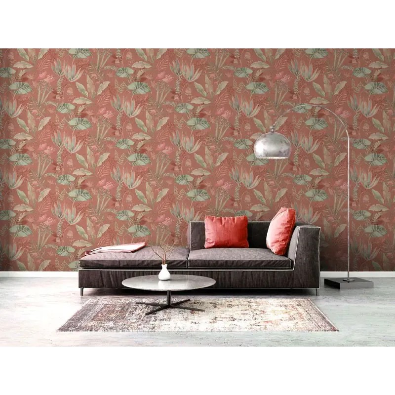 Perfecto para interiores que buscan calidez y estilo.. Papel pintado mix flores naranja As Creation Famous Garden 393482.