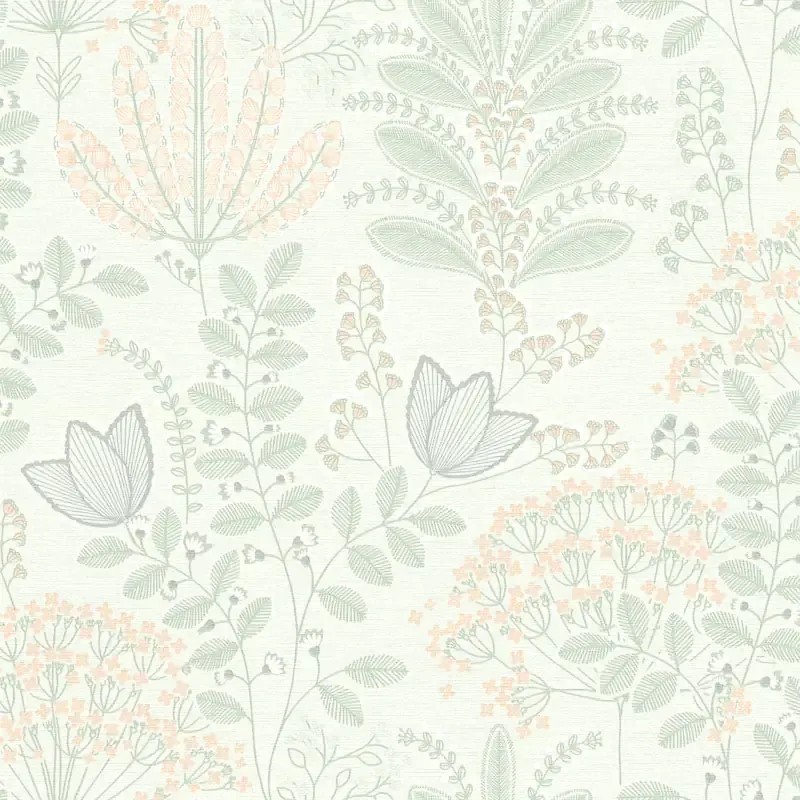 Papel pintado flores retro estilo boho blanco y rosa, Perfecto para interiores que buscan calidez y estilo. As Creation Famous Garden 393492.