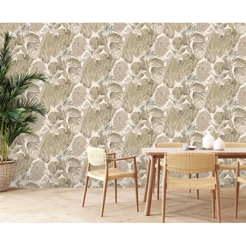 Una propuesta decorativa para espacios con personalidad. Papel pintado selvático floral tropical marrón As Creation Famous Garden 393552.
