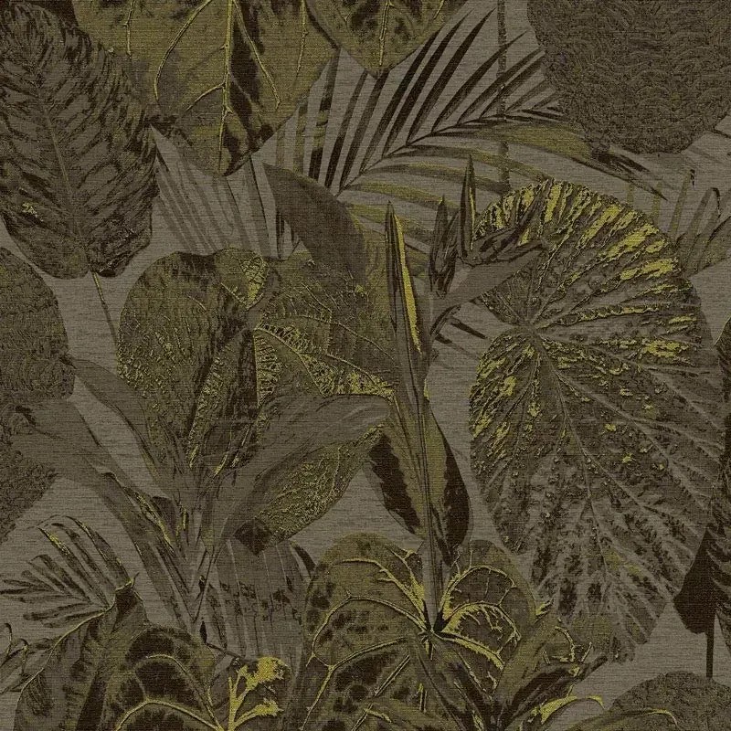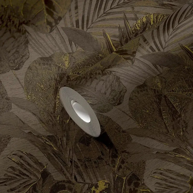 Inspirado en la decoración actual, destaca por su autenticidad.. Papel pintado hojas grandes floral tropical gris As Creation Famous Garden 393555.