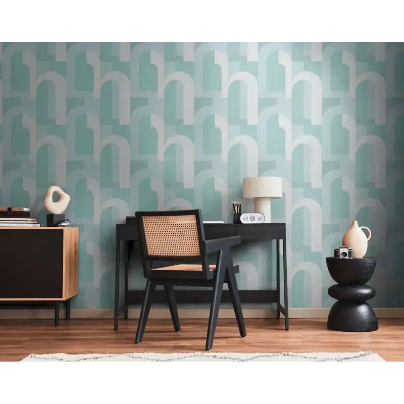 Papel pintado geométrico verde menta, forma arcos