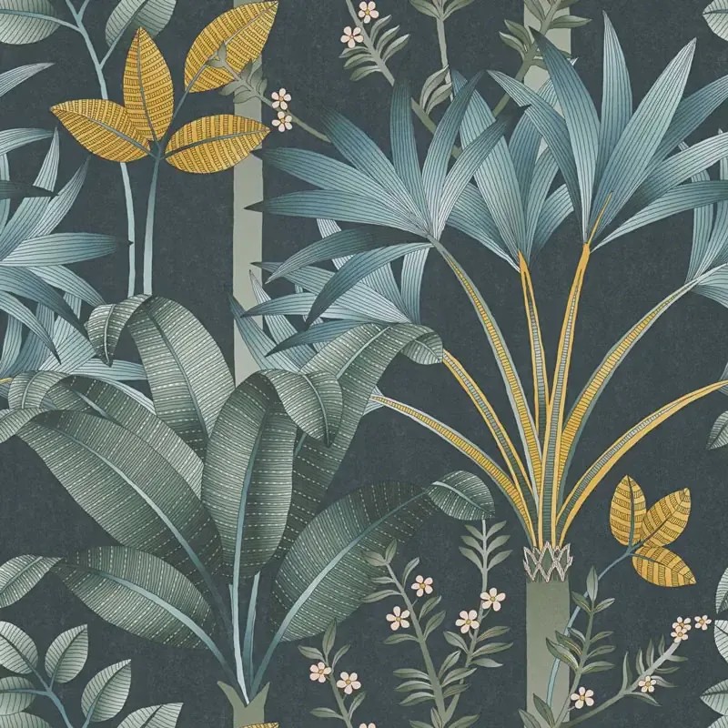 Papel pintado flores Art Decó negro, elegante y dramático con esencia vintage. Architects Paper Arcade, papel de pared calidad tejido no tejido lavable. Medidas: 53 cm x 10 metros