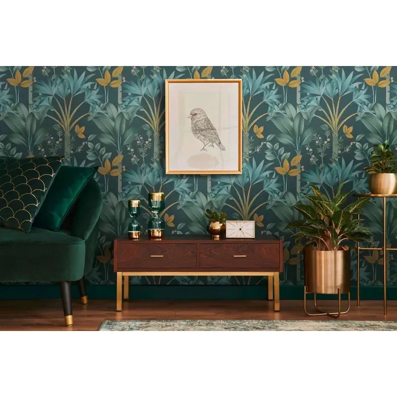 Papel pintado flores estilo Art Decó verde y blanco, sofisticado y armonioso con esencia retro. Architects Paper Arcade, papel de pared calidad tejido no tejido lavable. Medidas: 53 cm x 10 metros