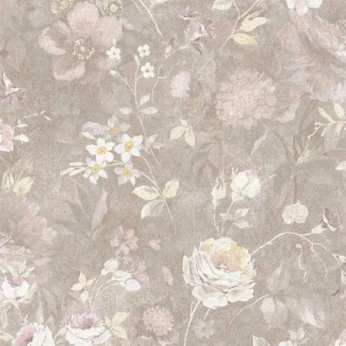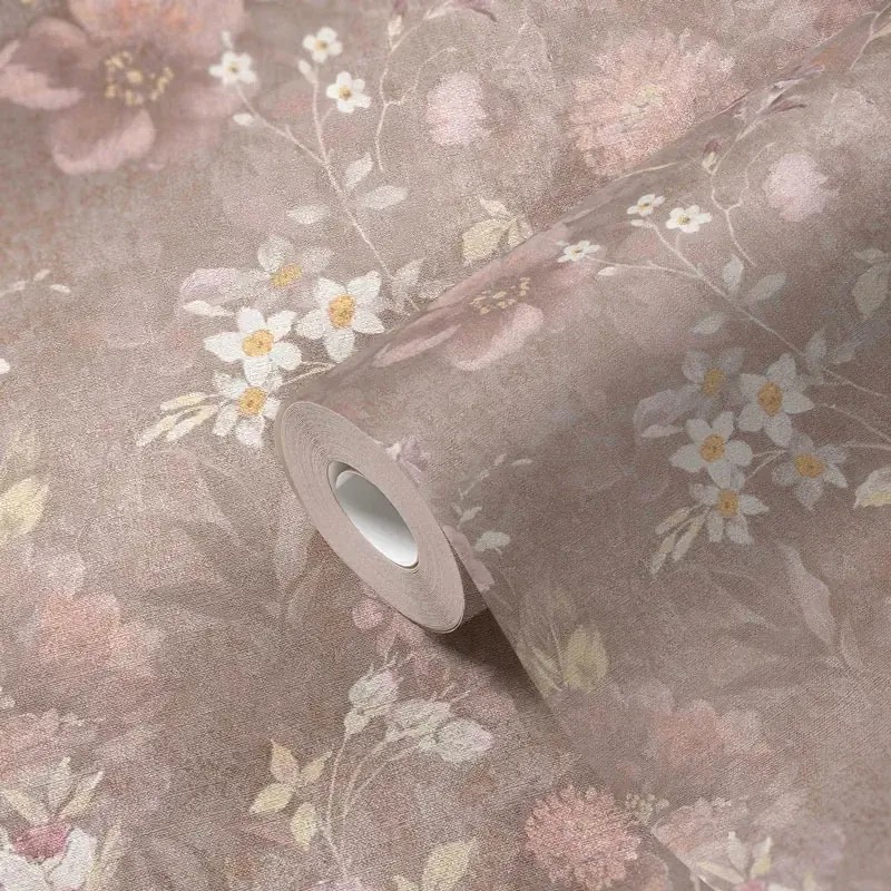 Perfecto para interiores que buscan calidez y estilo. Papel pintado floral rústico tonos pastel As Creation Natural Living 386364.