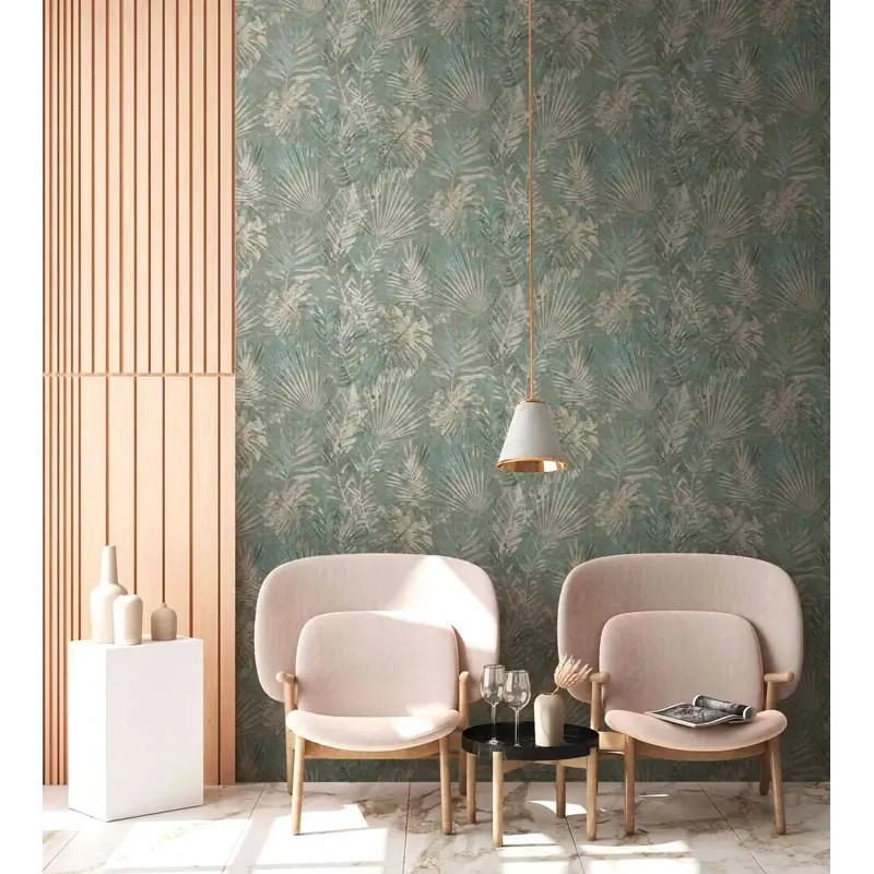 Ideal para dar un aire renovado y elegante a tus paredes. Papel pintado plantas selváticas verde As Creation Natural Living 386381.