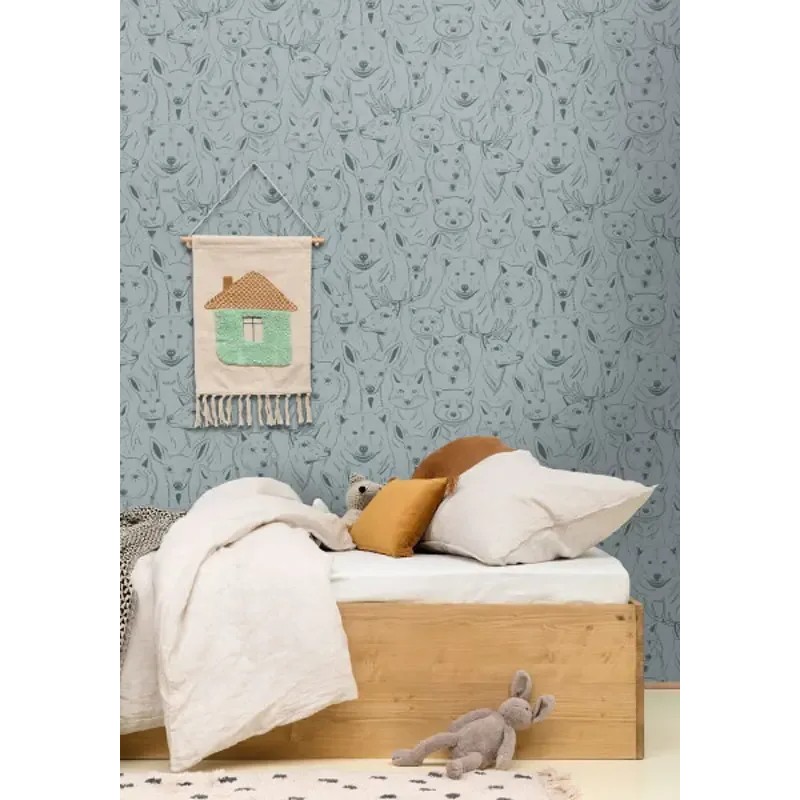 Papel pintado infantil animales del bosque verde marca Caselio, colección Autour Du Monde. Calidad tejido no-tejido lavable, medidas: 53 cm x 10 m.