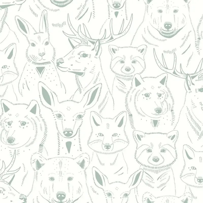 Papel pintado infantil animales del bosque verde marca Caselio, colección Autour Du Monde. Calidad tejido no-tejido lavable, medidas: 53 cm x 10 m.