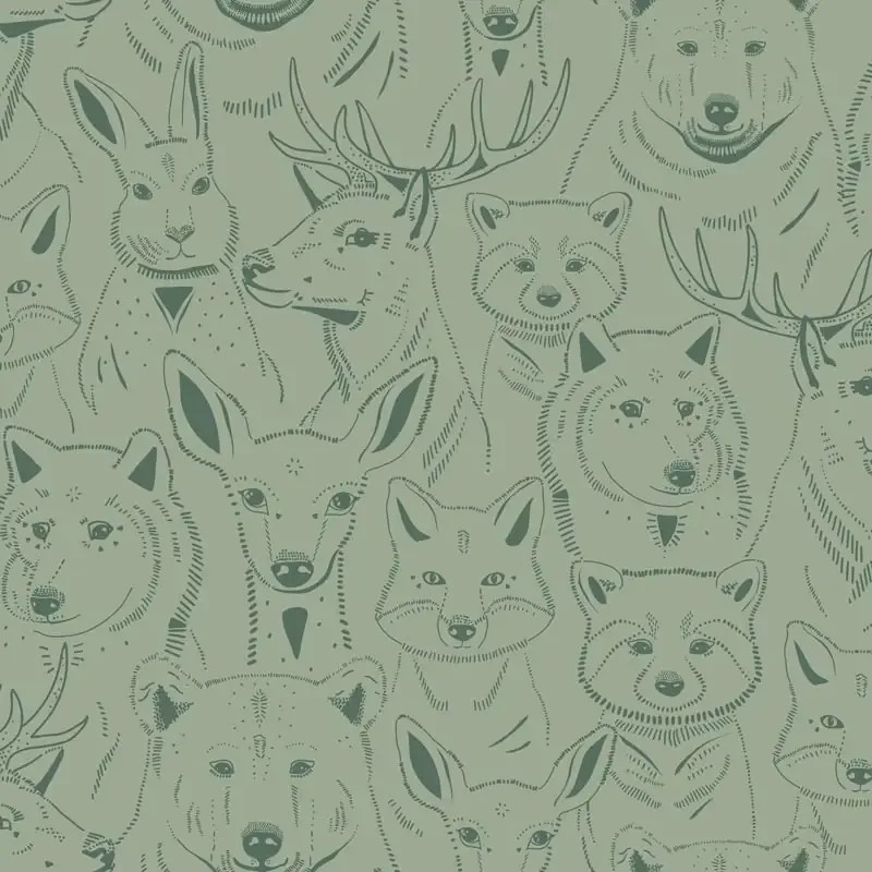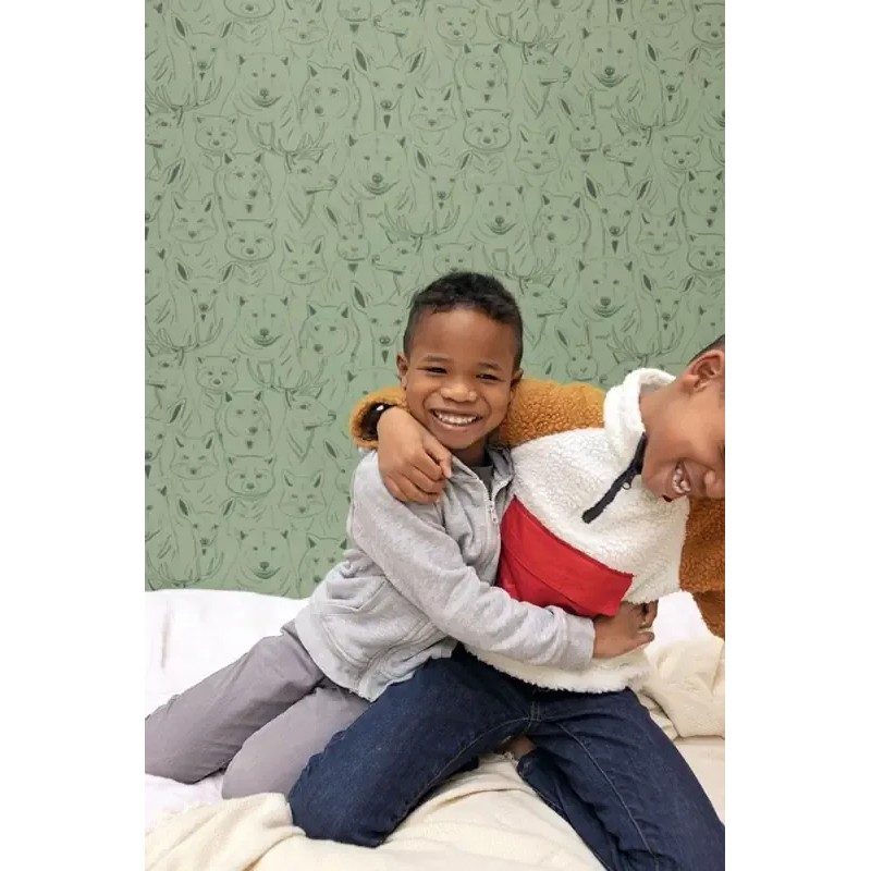 Papel pintado infantil animales del bosque verde