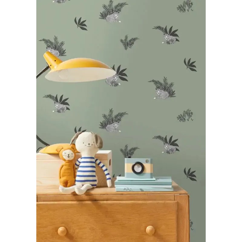 Papel pintado infantil zorros marrón marca Caselio, colección Autour Du Monde. Calidad tejido no-tejido lavable, medidas: 53 cm x 10 m.
