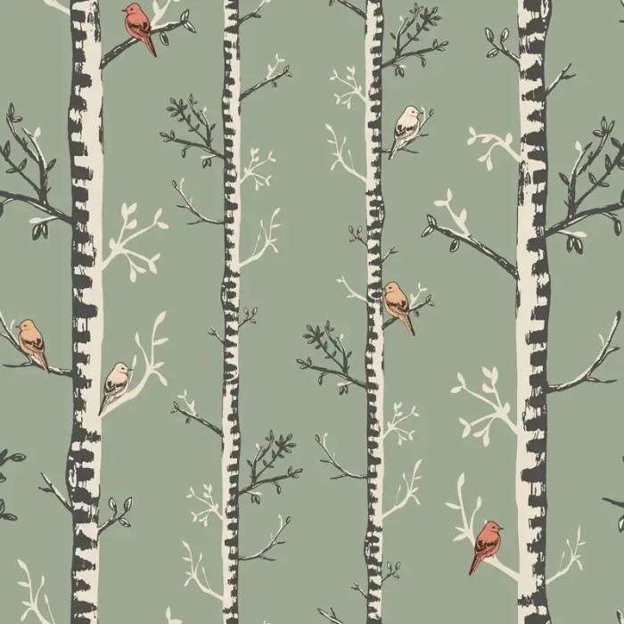 Papel pintado infantil árboles y pajarillos verde. Caselio Autour Du Monde, papel de pared calidad tejido no tejido lavable. Medidas: 53 cm x 10 metros