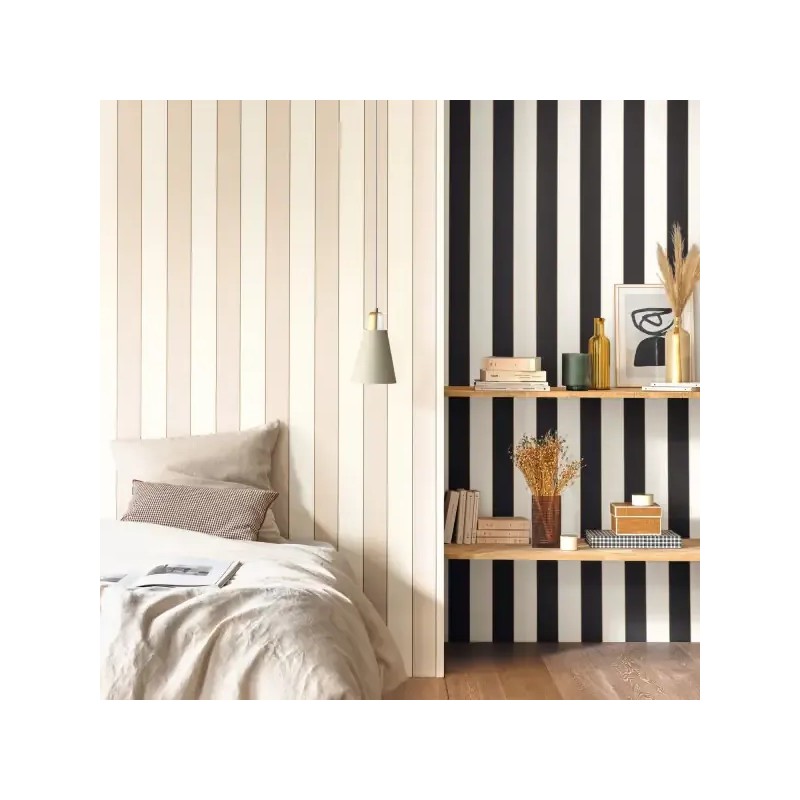 Papel pintado rayas beige y blanco para dormitorio. Crea un ambiente acogedor en tu dormitorio. Combina con estilos modernos y clásicos.