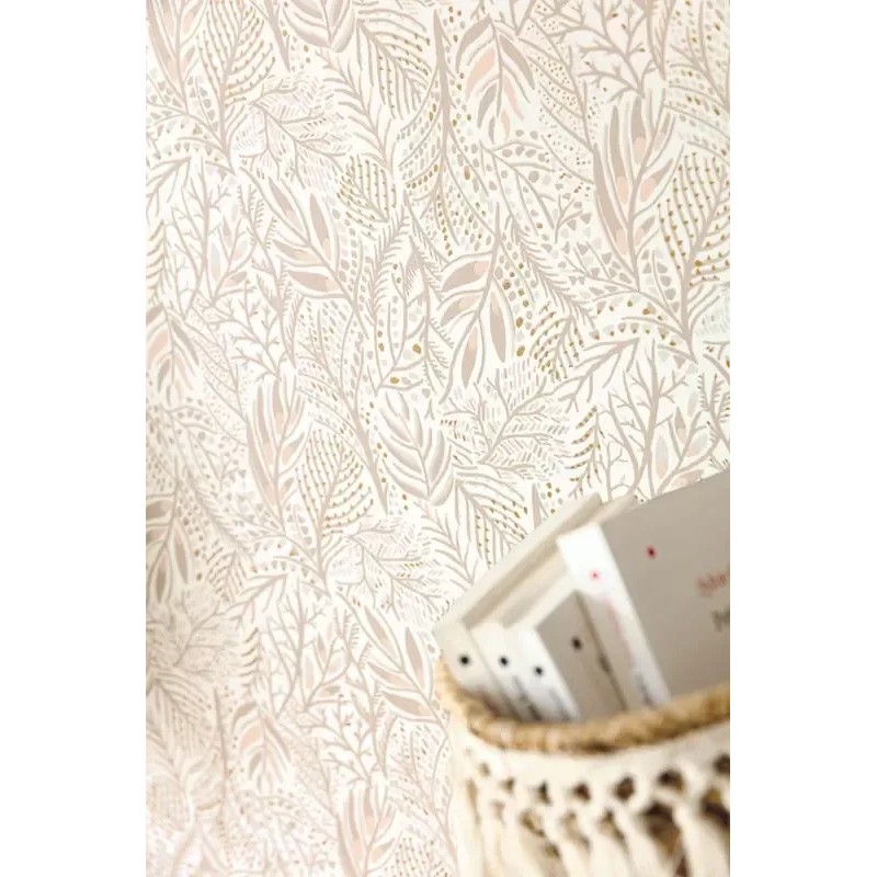 Papel pintado floral turquesa estilo escandinavo. Caselio Essentiel, papel de pared calidad tejido no tejido lavable. Medidas: 53 cm x 10 metros