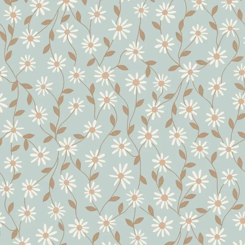 Papel pintado enredadera de margaritas turquesa. Caselio Essentiel, papel de pared calidad tejido no tejido lavable. Medidas: 53 cm x 10 metros