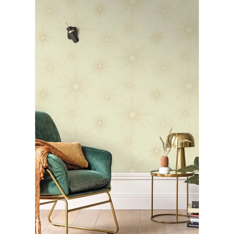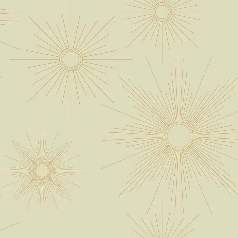 Papel pintado moderno negro con estrellas doradas y un toque Art Decó. Caselio Golden Age, papel de pared calidad tejido no tejido lavable. Medidas: 53 cm x 10 metros