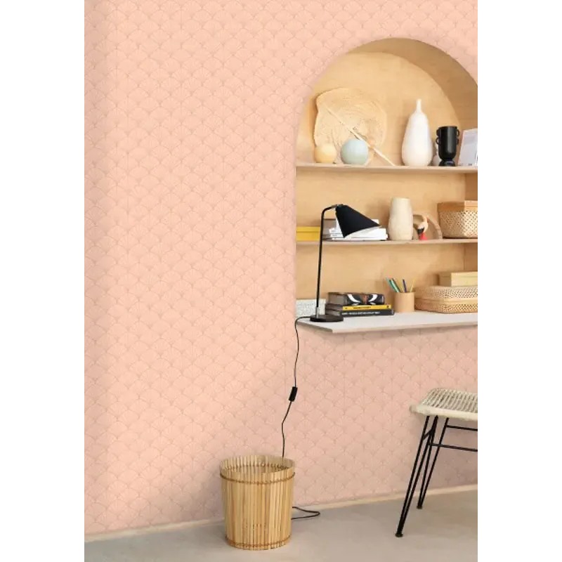 Papel pintado estilo Art Decó rosa y dorado