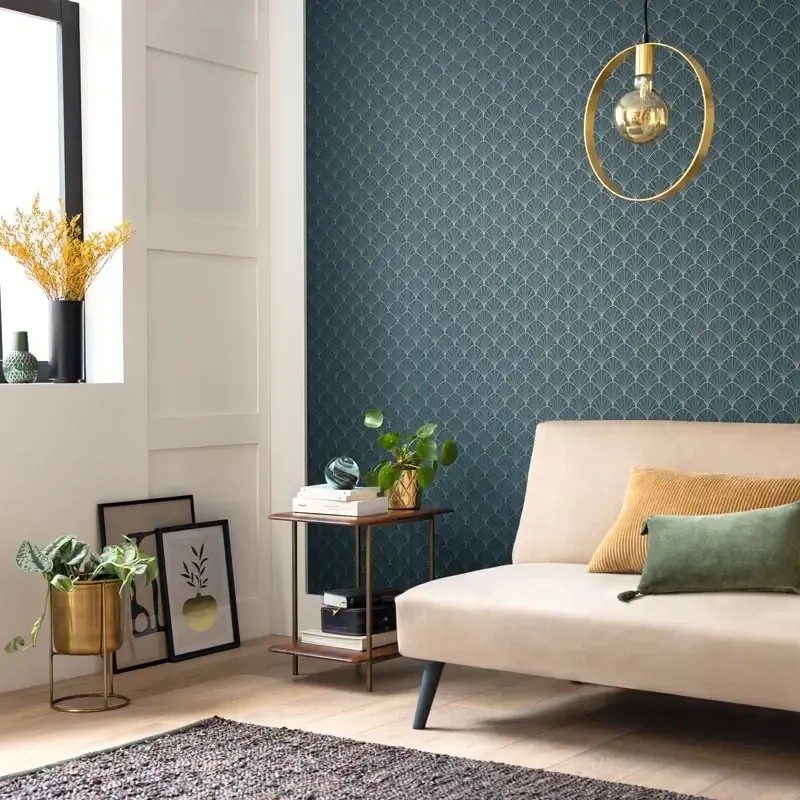 Papel pintado elegante para salón estilo Art Decó. Caselio Golden Age, papel de pared calidad tejido no tejido lavable. Medidas: 53 cm x 10 metros