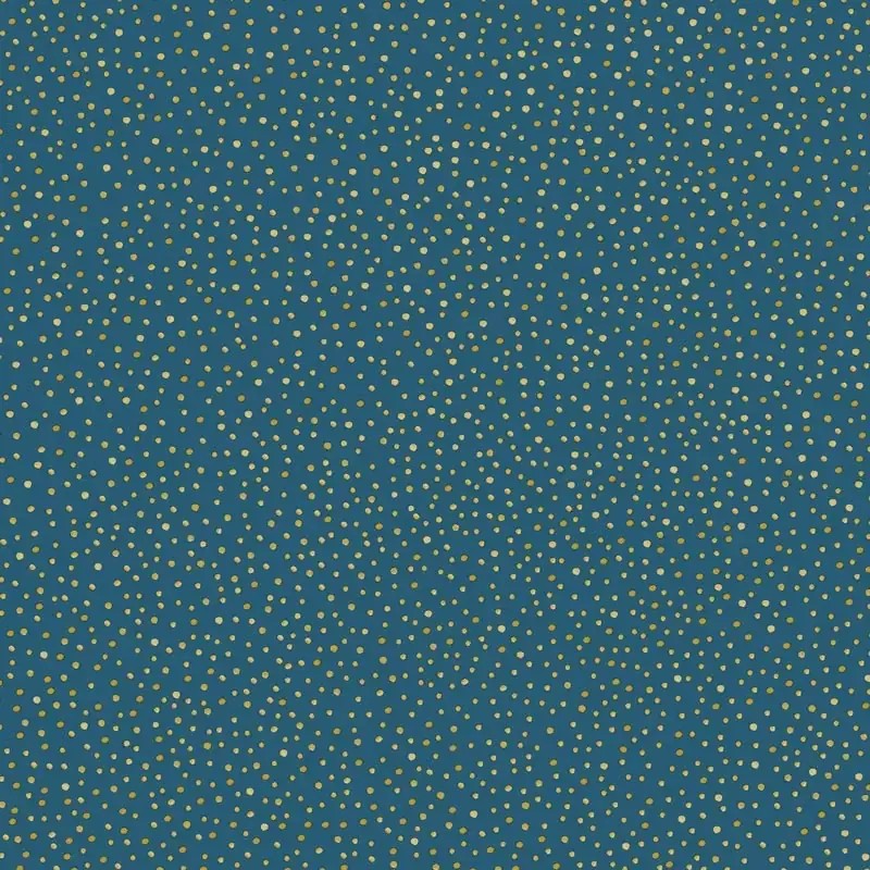 Papel pintado puntos pequeños azules y dorado metalizado. Caselio Happy Therapy, papel de pared calidad tejido no tejido lavable. Medidas: 53 cm x 10 metros