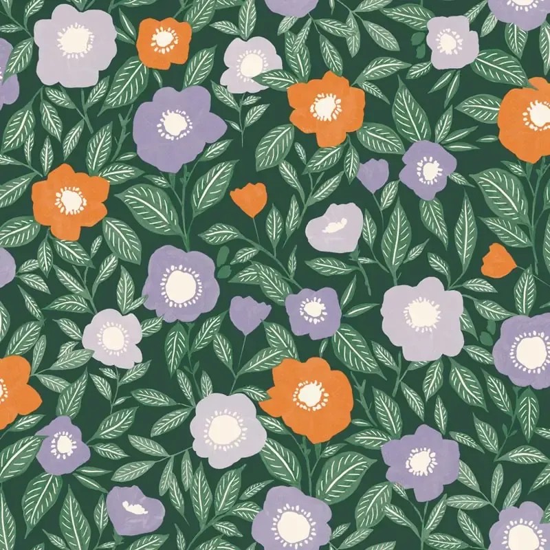 Este diseño es una encantadora referencia del papel pintado de flores con una paleta multicolor en tonos alegres y un bonito estampado de amapolas