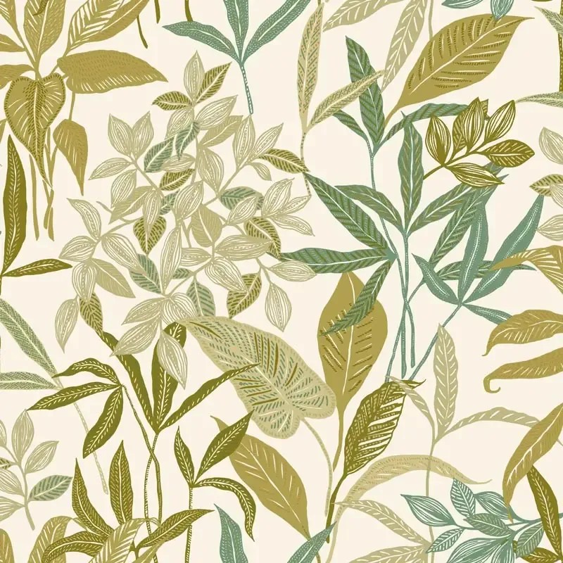 Papel pintado estampado floral blanco y verde. Caselio Green & Co, papel de pared calidad tejido no tejido lavable. Medidas: 53 cm x 10 metros