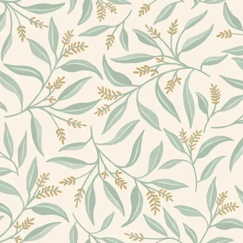 Papel pintado ramas eucaliptos estilo floral verde. Caselio Green & Co, papel de pared calidad tejido no tejido lavable. Medidas: 53 cm x 10 metros
