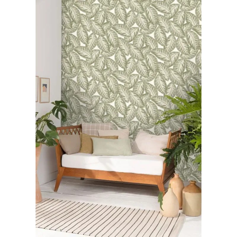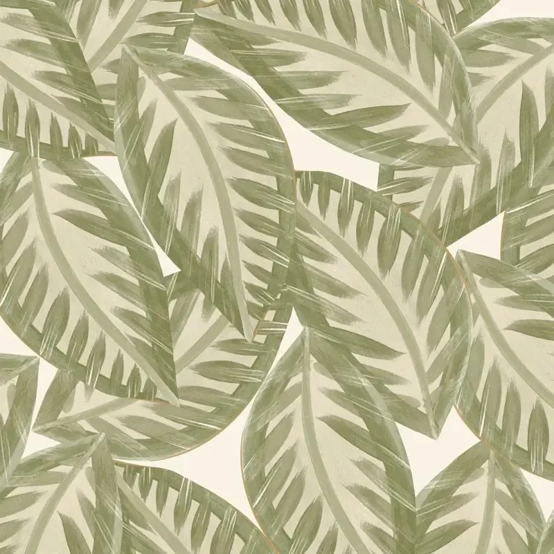 Papel pintado hojas grandes verdes, ideal dormitorio. Caselio Green & Co, papel de pared calidad tejido no tejido lavable. Medidas: 53 cm x 10 metros