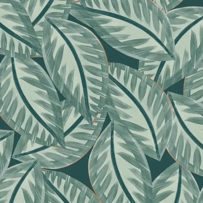 Papel pintado estampado hojas grandes verde caqui. Caselio Green & Co, papel de pared calidad tejido no tejido lavable. Medidas: 53 cm x 10 metros