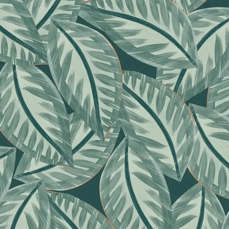 Papel pintado hojas grandes verdes, ideal dormitorio. Caselio Green & Co, papel de pared calidad tejido no tejido lavable. Medidas: 53 cm x 10 metros