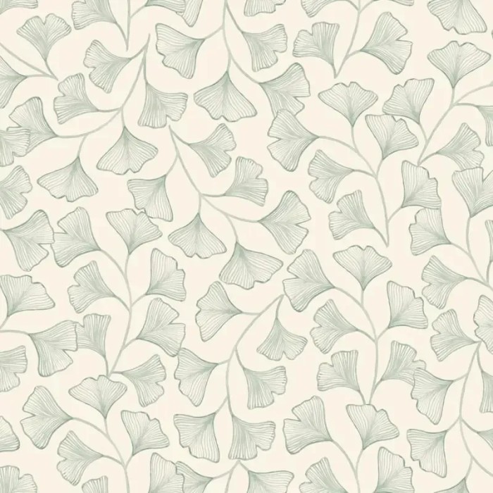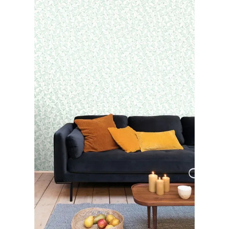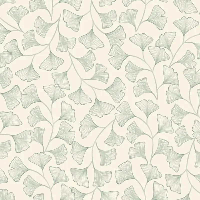 Papel pintado japonés, hojas de ginkgo verde. Caselio Green & Co, papel de pared calidad tejido no tejido lavable. Medidas: 53 cm x 10 metros