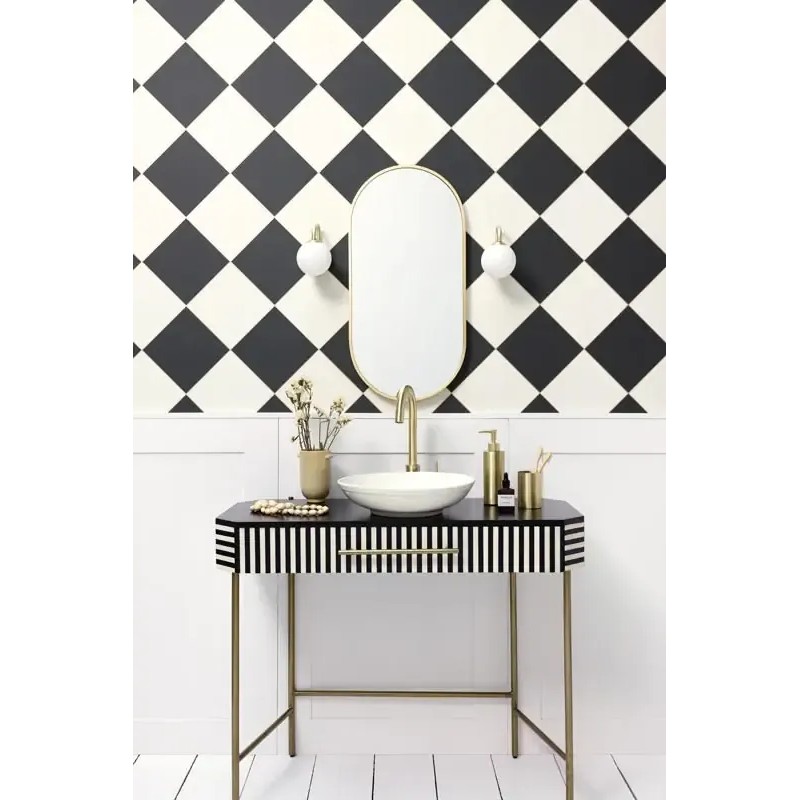 Como un tablero de ajedrez gigante, este papel pintado combina el blanco y el negro con un patrón de cuadros geométrico. ¡Una hermosa alternancia elegante y sobria que crea un efecto óptico sorprendente!