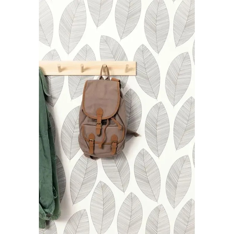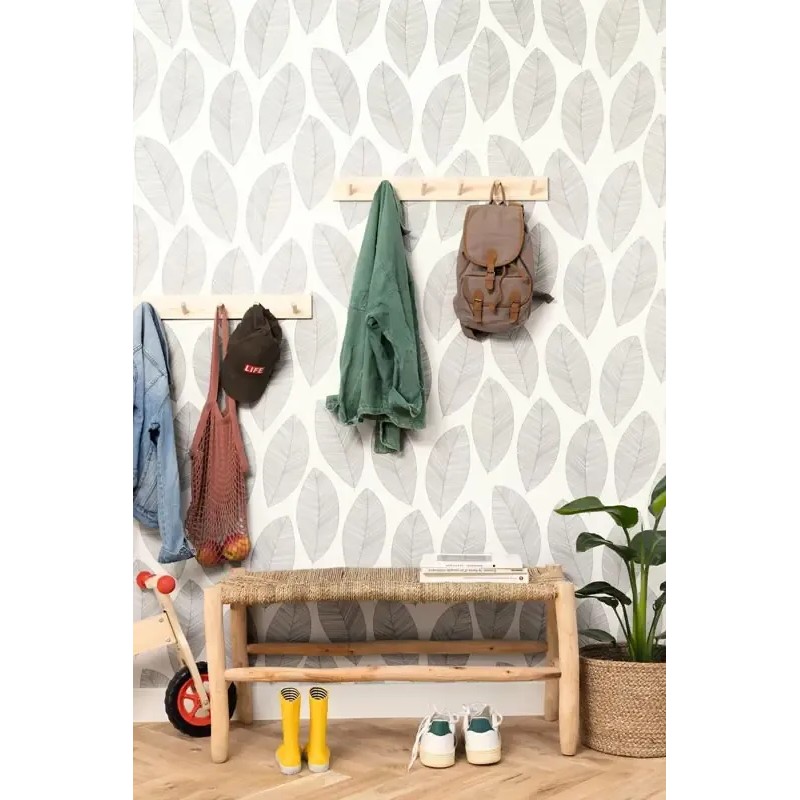 Papel pintado hojas de banano blanco y negro. Caselio Moonlight, papel de pared calidad tejido no tejido lavable. Medidas: 53 cm x 10 metros