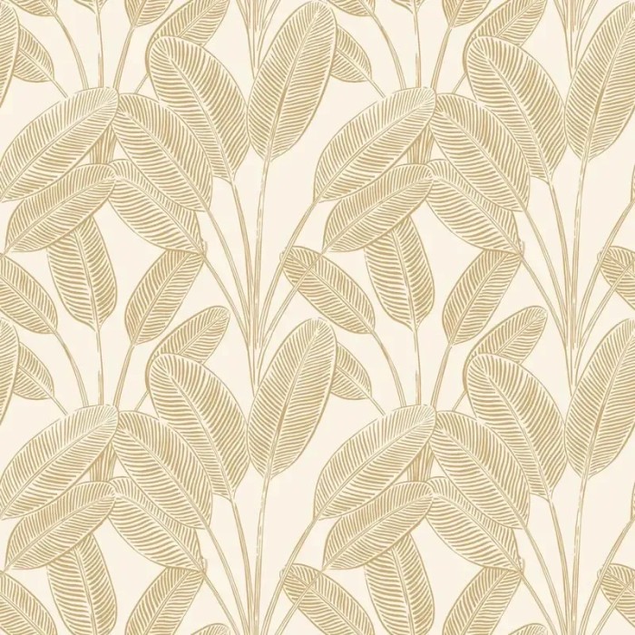 Papel pintado hojas grandes blanco y dorado. Caselio Moonlight, papel de pared calidad tejido no tejido lavable. Medidas: 53 cm x 10 metros
