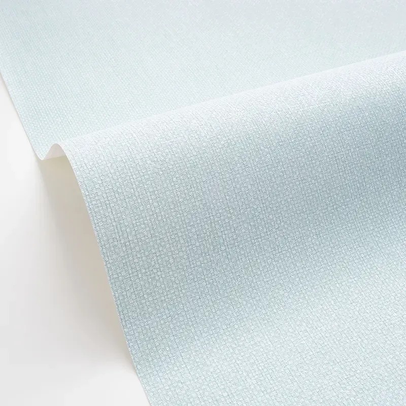 Papel pintado efecto textil azul cielo. Caselio Damier, papel de pared calidad tejido no tejido lavable. Medidas: 53 cm x 10 metros