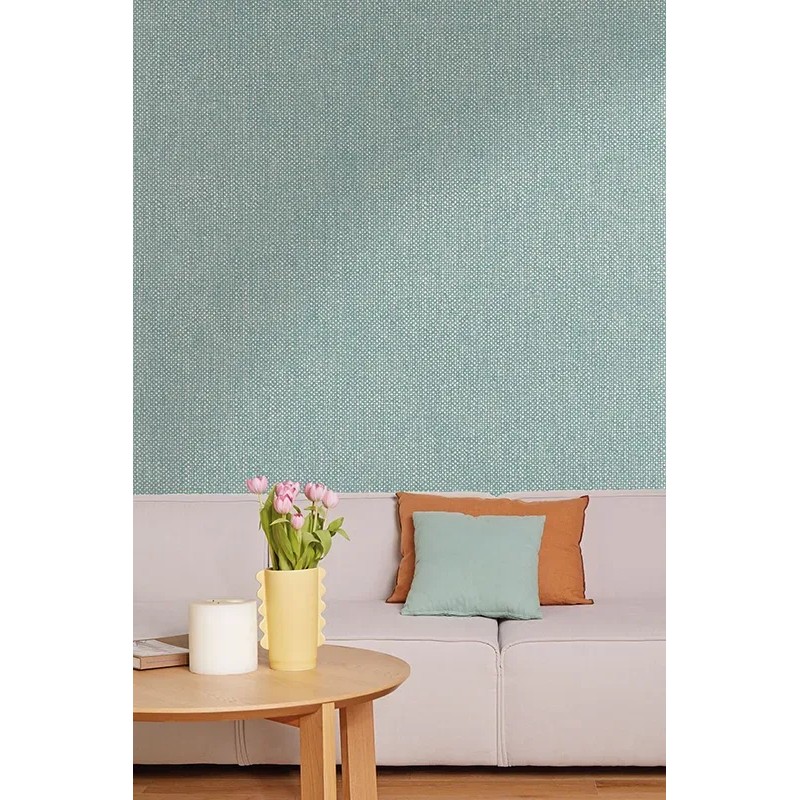 Papel pintado efecto textil azul cielo. Caselio Damier, papel de pared calidad tejido no tejido lavable. Medidas: 53 cm x 10 metros