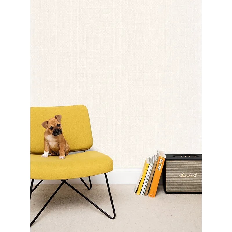 Papel pintado gris perla aspecto textil. Caselio Damier, papel de pared calidad tejido no tejido lavable. Medidas: 53 cm x 10 metros