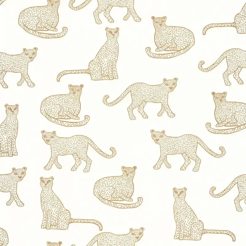 Papel pintado infantil dibujos de leopardos blanco y dorado