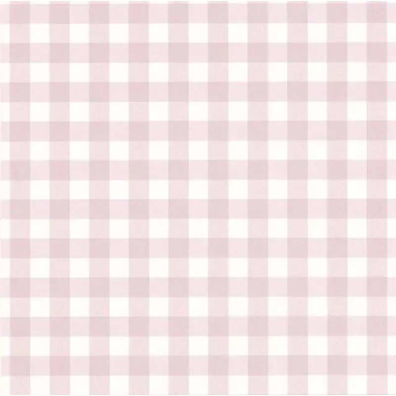Papel pintado infantil cuadros vichy rosa pálido. Caselio Let´s Go Girls!, papel de pared calidad tejido no tejido lavable. Medidas: 53 cm x 10 metros