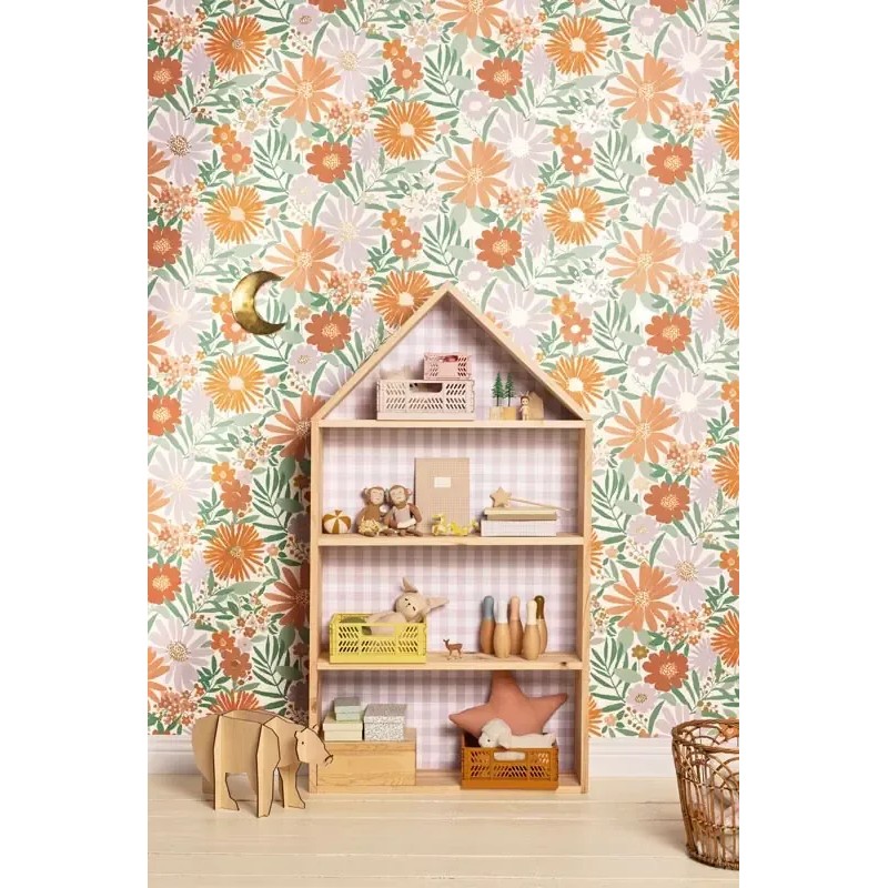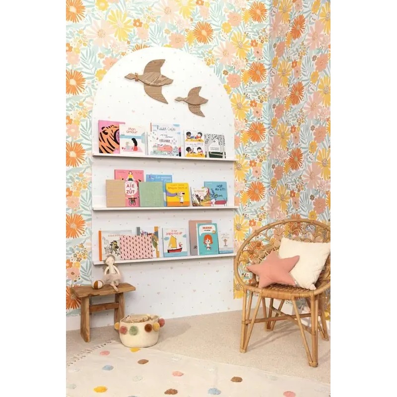 Papel pintado infantil flores XXL margaritas multicolor marca Caselio, colección Let´s Go Girls!. Calidad tejido no-tejido lavable, medidas: 53 cm x 10 m.
