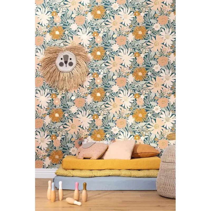 Papel pintado infantil flores XXL margaritas multicolor marca Caselio, colección Let´s Go Girls!. Calidad tejido no-tejido lavable, medidas: 53 cm x 10 m.