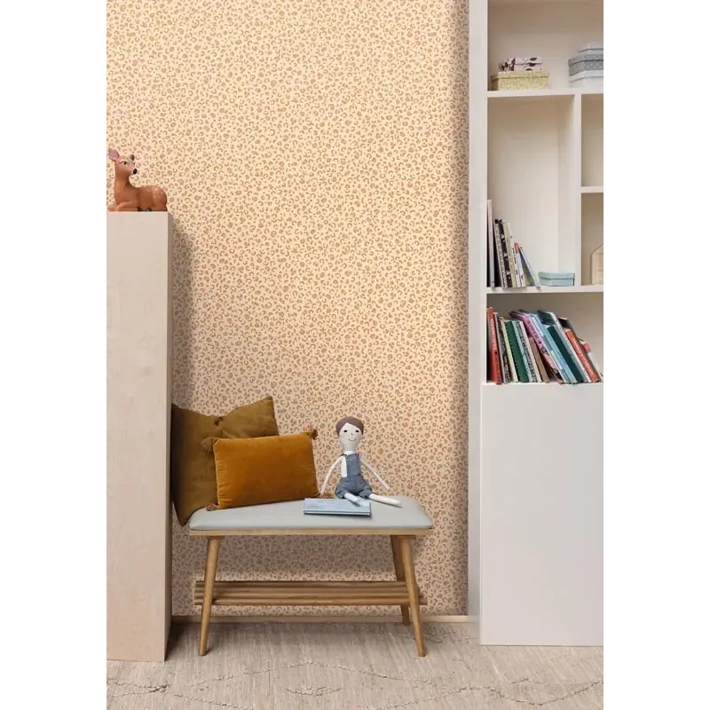 Papel pintado infantil piel leopardo beige y dorado. Caselio Let´s Go Girls!, papel de pared calidad tejido no tejido lavable. Medidas: 53 cm x 10 metros
