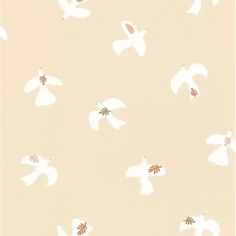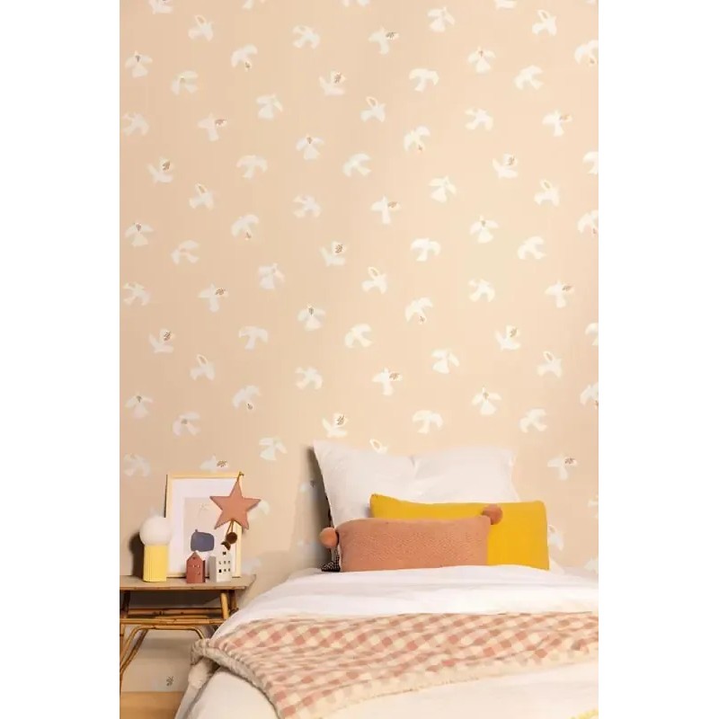 Papel pintado infantil palomas blancas marca Caselio, colección Let´s Go Girls!. Calidad tejido no-tejido lavable, medidas: 53 cm x 10 m.