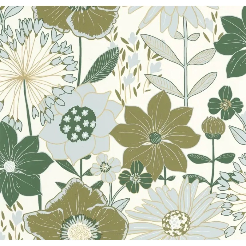 Papel pintado flores juvenil azul y dorado. Caselio XXL, papel de pared calidad tejido no tejido lavable. Medidas: 53 cm x 10 metros