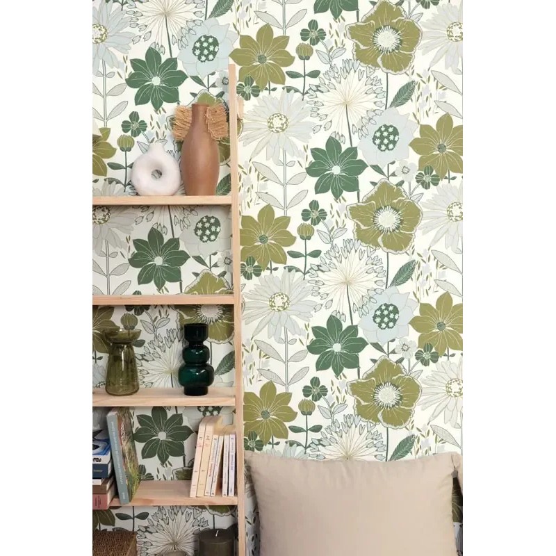 Papel pintado flores para habitación juvenil. Caselio XXL, papel de pared calidad tejido no tejido lavable. Medidas: 53 cm x 10 metros