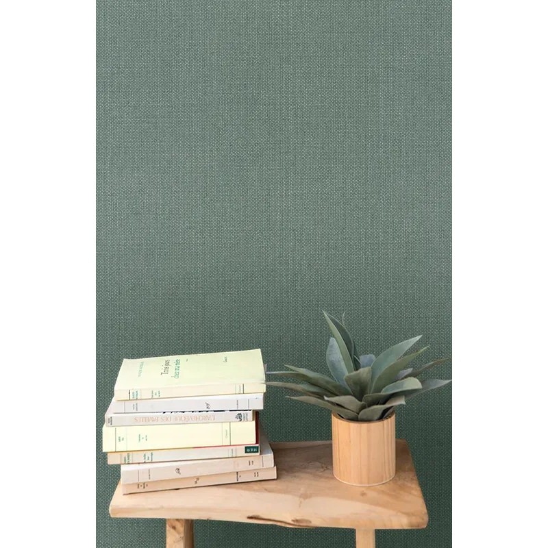 Papel pintado efecto textil verde celadón. Caselio Wild, papel de pared calidad tejido no tejido lavable. Medidas: 53 cm x 10 metros