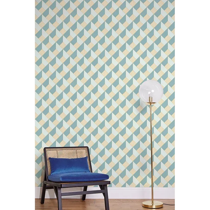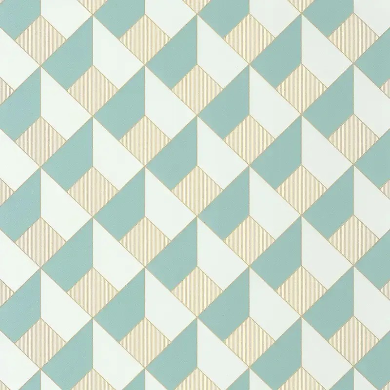 Papel pintado geométrico verde, laberinto 3D. Caselio Outlines, papel de pared calidad tejido no tejido lavable. Medidas: 53 cm x 10 metros