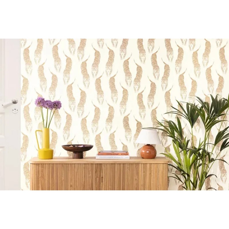 Papel pintado panteras salvajes beige y dorado 104921260. Caselio Wild, papel de pared calidad tejido no tejido lavable. Medidas: 53 cm x 10 metros