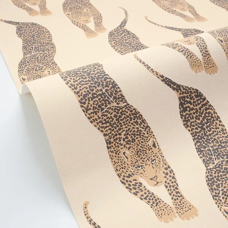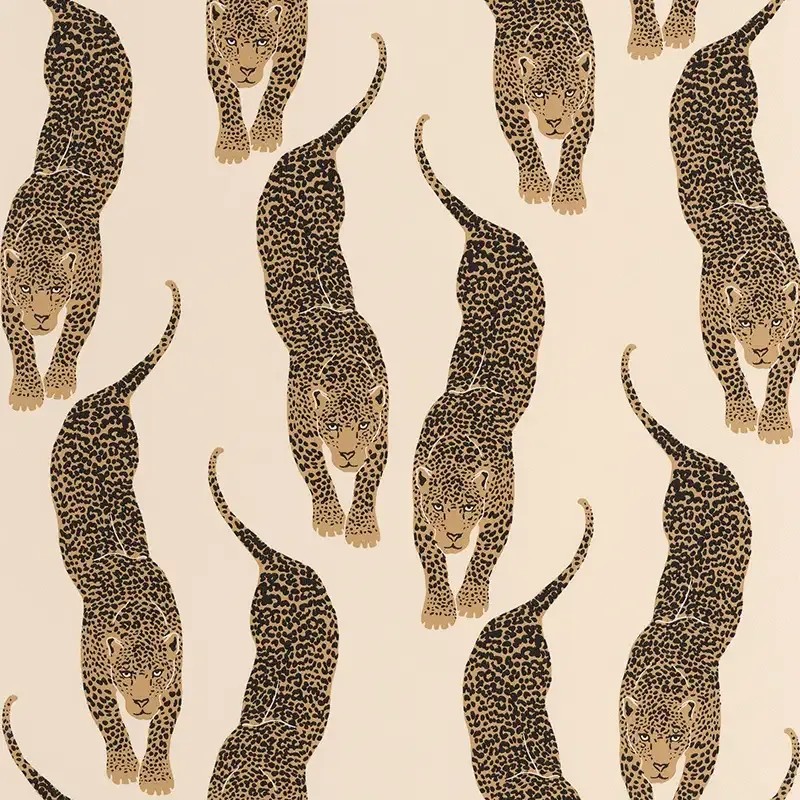 Papel pintado panteras salvajes blanco y dorado. Caselio Wild, papel de pared calidad tejido no tejido lavable. Medidas: 53 cm x 10 metros