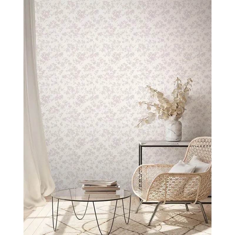 Papel pintado flores estilo romántico blanco, rosa