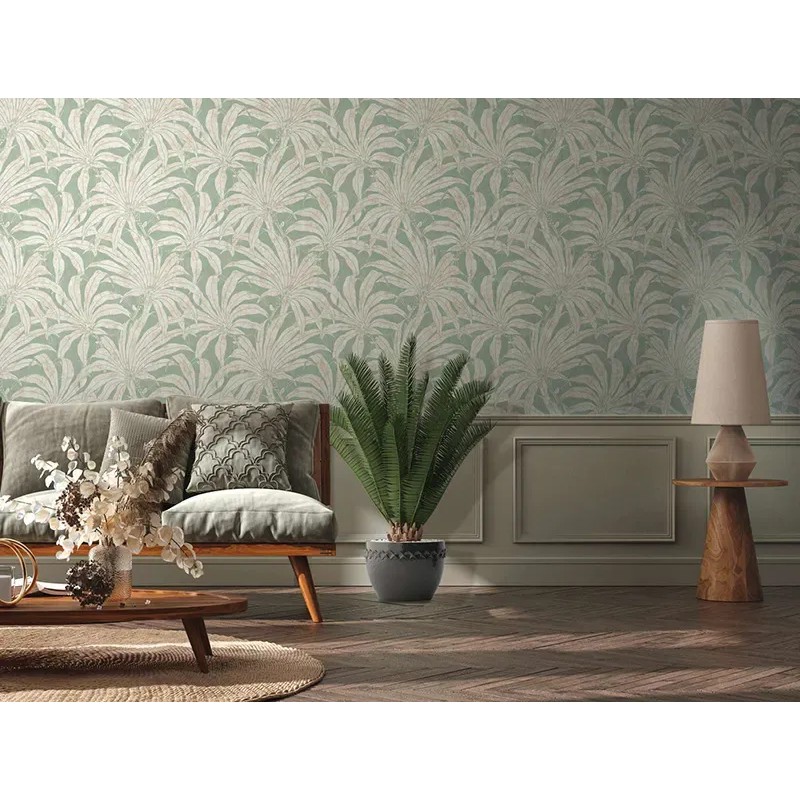 Una propuesta decorativa para espacios con personalidad.. Papel pintado flores exóticas azul petróleo, verde As Creation Jade 395016.